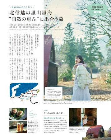 第2弾ではモデルのkazumiさんが?野県の飯山駅、新潟県の上越妙高駅と糸魚川駅、富山県の黒部宇奈月温泉駅を巡りました。このエリアはおいしい水に恵まれ、豊かな海の幸と山菜などの山の幸、ともに旬の食材を堪能できるのが魅力。忙しい日常や喧騒から少し離れ、山や川、海など、のんびりとした日本らしい原風景が広がる静かな環境の中でリフレッシュ。北陸新幹線に乗って、贅沢な時間を過ごす旅へと出かけましょう。