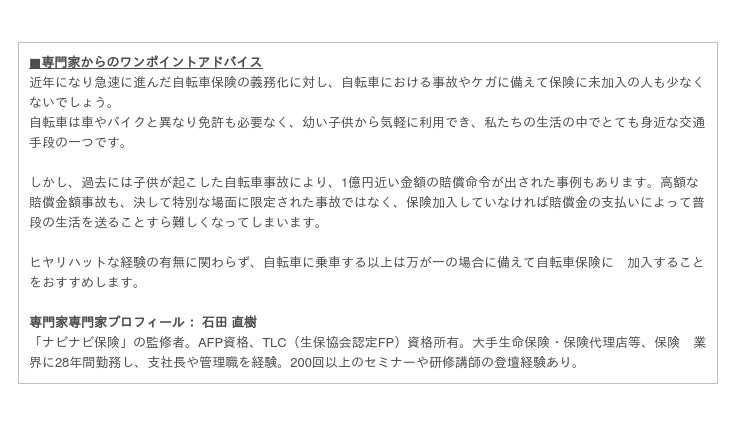 自転車事故に遭いそうになった経験者は保険加入率が高い