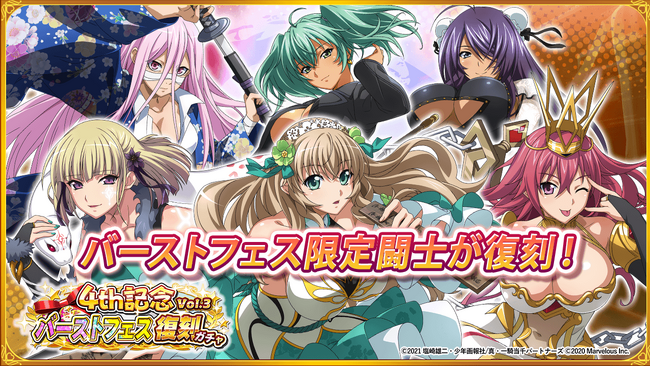 サービス開始4周年を記念して、排出されるSSR闘士に、過去のバーストフェス限定闘士が加わった「特別な復刻ガチャ」が登場!