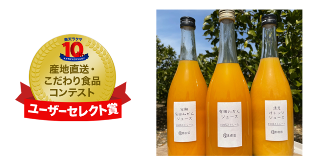 オンラインコンテストでのお客様のコメント:「そのままでも食べたらおいしそうなみかんをジュースにしたのはすごく贅沢だと思った」「無添加だから飲んでみたい」