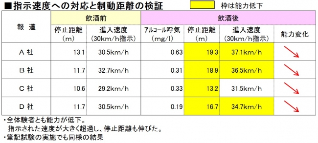 また、講習会終了後、参加した記者からは「飲酒後も意識はハッキリしていると思っていたが、実際運転してみると自分でも怖いと思うような場面がいくつかあった」等の感想が聞かれました。