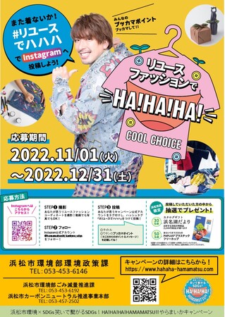 キャンペーンは、浜松市やらまいか大使のEXITりんたろー。に加え、うるとらブギーズ、Everybodyの3組が、キャンペーン動画、ポスター、特設サイトに出演し、浜松市民に向けて、環境政策やSDGsについての投稿を呼び掛けます。