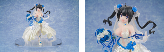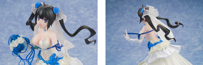 ヘスティアをオリジナル描き下ろしイラストのウエディングドレス姿でフィギュア化!駆け寄る幸せいっぱいのヘスティア!青薔薇の花ことばは「夢かなう」(ハート)