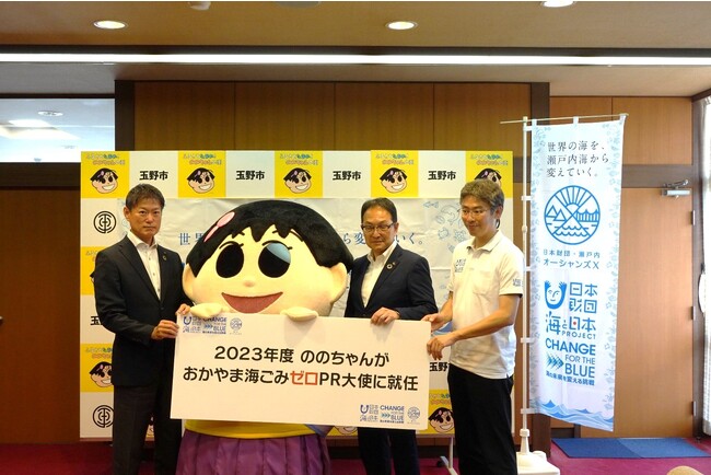 一般社団法人海と日本プロジェクトin岡山は、玉野市のイメージキャラクターでお馴染みの「ののちゃん」がPR大使に就任することを記念して、7月18日(火)に玉野市役所でおかやま海ごみゼロPR大使就任セレモニーを開催しました。