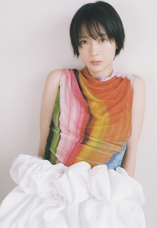 「素敵な衣装をいろいろと着させていただいたんですけど、中でも白いボリュームスカートを穿いたスタイリングのバランスがユニークで、とくに好きでした。1ポーズ目にこの衣装を着られたことで気分が上がりましたね」