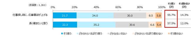 アルバイトとして新しく働き始めた人で、現在の職場で服装や身だしなみに決まりが設けられている割合は61.9%だった。一方で、職場の服装や身だしなみの自由化に対する賛否を聞いたところ、「どちらかというと賛成」が50.5%と最も高く、次いで「賛成」が33.7%となり、賛成派が8割を超えた。年代別では、10代で「賛成」が54.5%と最も高く、次いで20代で43.6%となり、若年層を中心に賛成派が多いことがわかった。また、理由を聞いたところ、「自分らしく働けるため」が58.0%で最も高く、次いで「前向きな気持ちで仕事ができるため」が37.2%となった。また、服装・身だしなみの自由化により仕事探しや働く意識に影響があるかを聞くと、「仕事探し時に、応募意欲が上がると思う」は55.7%「長く働きたいと思う」は57.5%となった。【図2、3、4、5】