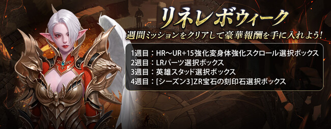 同時開催の「[東方の守護者記念]リネレボウィークイベント」では、毎週変わる成長テーマによってミッションをクリアすると報酬を獲得できます。