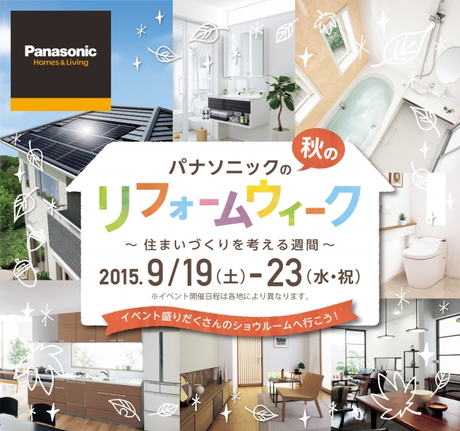 パナソニック株式会社 エコソリューションズ社は、全国各地のパナソニック リビング ショウルームにおいて、2015年9月19日(土)から9月23日(水・祝)の期間中、「秋のリフォームウィーク〜住まいづくりを考える週間〜」を開催します。