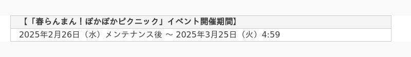 本日より、「春らんまん!ぽかぽかピクニック」イベントが開始しました。