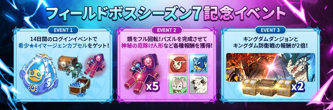 フィールドボスシーズン7の開幕を記念して、様々な報酬を獲得できる下記のイベントを開催いたします。