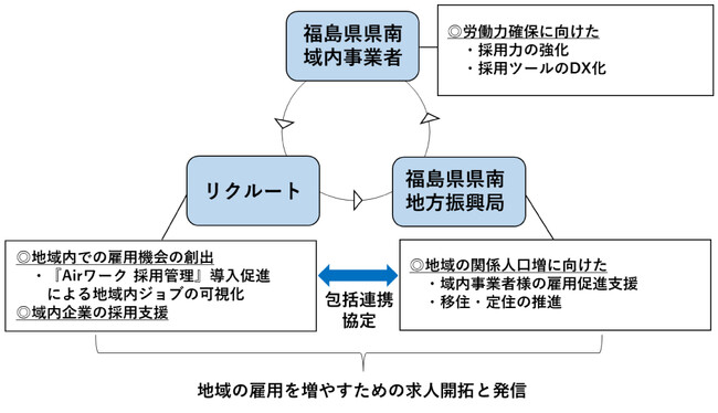 リクルート、福島県県南地方振興局と包括連携協定を締結『Airワーク 採用管理』で地元企業の採用ホームページを立ち上げ、雇用促進、地域活性を目指す
