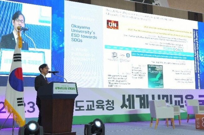 【岡山大学】韓国慶尚北道教育庁主催の「世界市民教育国際フォーラム」で横井篤文副学長が日本代表としてSDGs教育の事例を発表