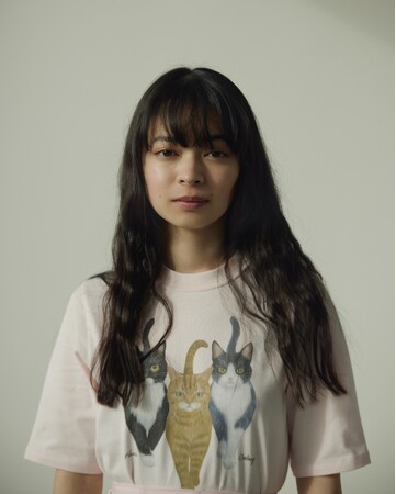 上國料さんの3匹の愛猫をモチーフに、オリジナルのイラストレーションに描き起こしプリントしたTシャツ。