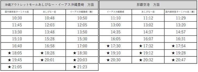 路線:那覇バス95番線(空港あしびなー線)、那覇空港 ⇔「 沖縄アウトレットモール あしびなー」 ⇔ 「イーアス沖縄豊崎」