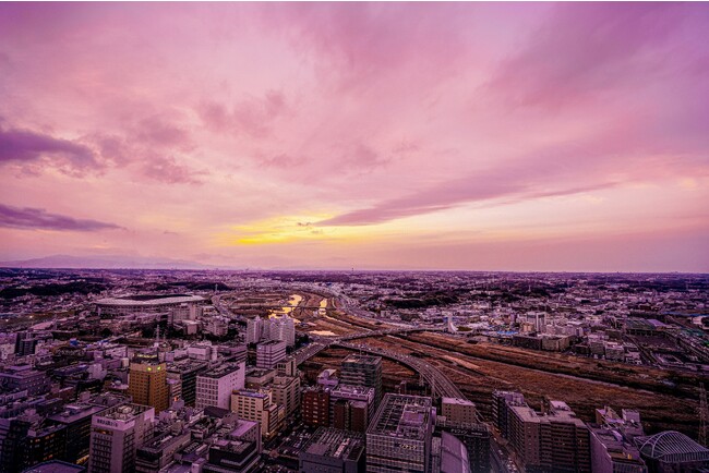 窓一面に広がる景色は、座る席によって東京や横浜、富士山などそれぞれ違う絶景を眺めることができ、時間帯によってさまざまな空模様をご覧いただけます。