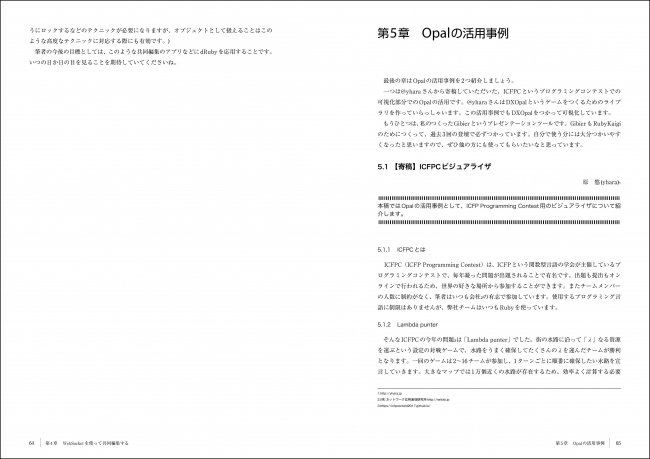 本書はRubyで書いたソースコードをJavascriptに変換するトランスパイラ(ソースコードコンパイラ)であるOpalのチュートリアルガイドです。Opalの入門、応用、実践と実用的なアプリケーションを作るための解説に加えてOpalの活用事例も掲載しています。