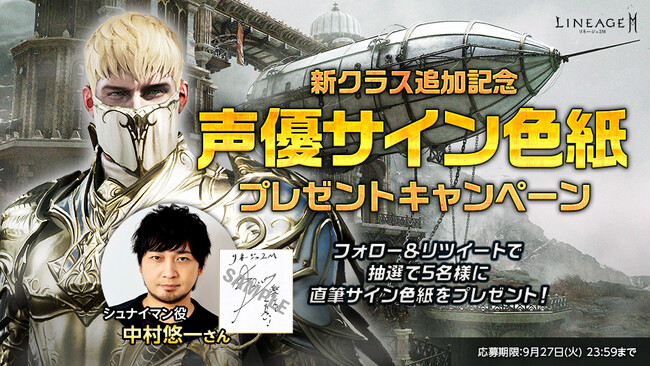 新クラス「シュナイマン」の実装を記念して、シュナイマン役 中村悠一さんの直筆サイン色紙を抽選でプレゼントします。