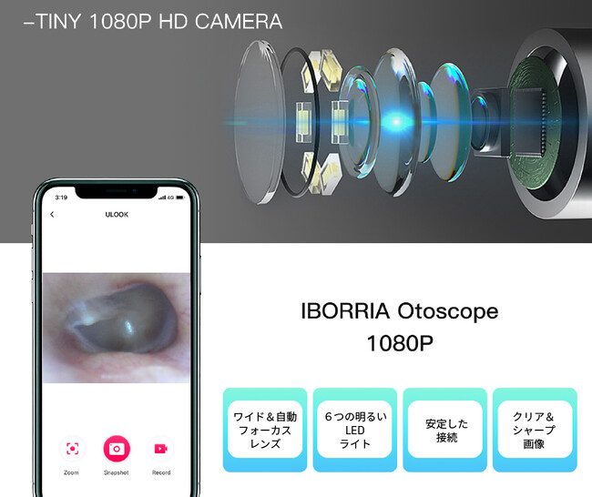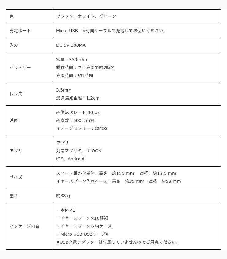 【LEDライト/iOS・Androidアプリ対応/高解像度1080p/子供から大人まで安全に耳ケア/USB充電】
