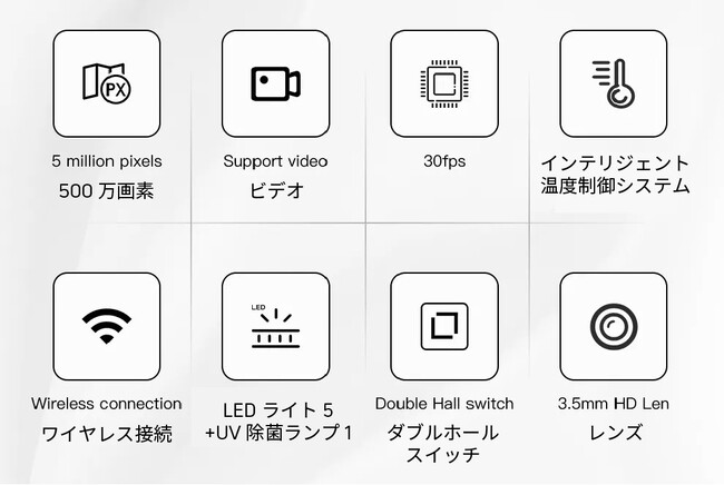 ● LEDライト&高画質小型カメラ搭載で、クリアで明確にチェック可能