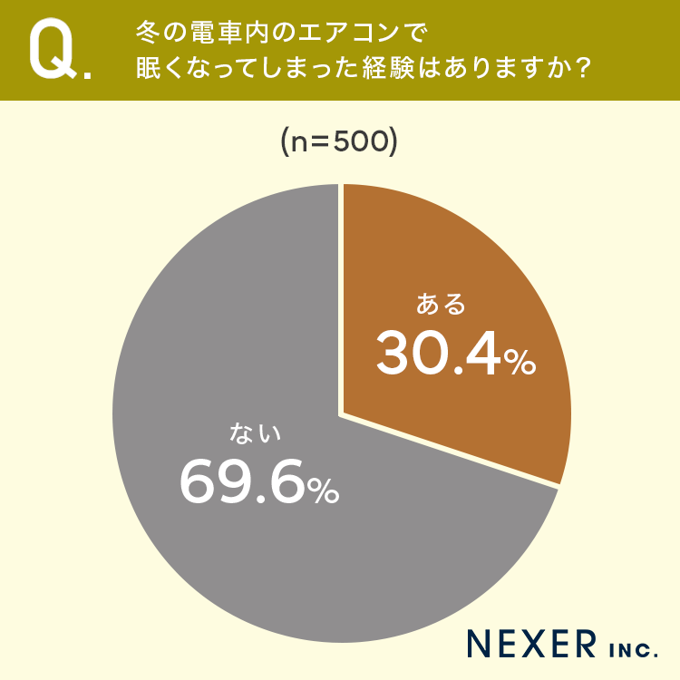 ■30.4%が、冬の電車内のエアコンで眠くなってしまった経験が「ある」と回答