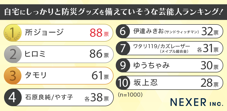 株式会社NEXER・防災グッズを備えていそうな芸能人に関する調査
