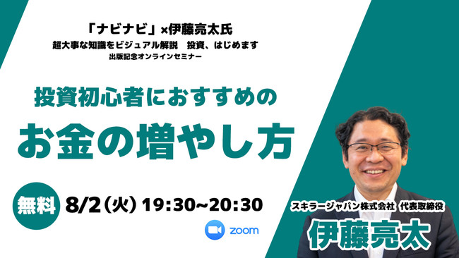 株式会社エイチームのグループ会社である株式会社エイチームライフデザイン(本社:愛知県名古屋市、代表取締役:間瀬文雄)が運営する「ナビナビ」は、株式会社スキラージャパン代表取締役である現役FP伊藤亮太氏の書籍発売を記念して、2022年8月2日(火)に無料オンラインセミナーを開催します。
