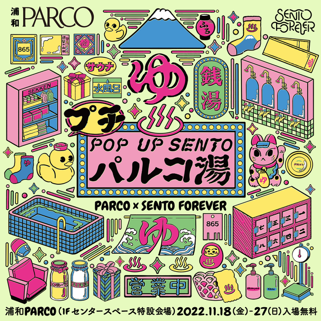 渋谷PARCO/心斎橋PARCOを沸かせた「POP UP SENTO パルコ湯」のスピンオフ企画「POP UP SENTO プチ パルコ湯」が、浦和PARCOに初登場!「銭湯文化を永遠に!」をビジョンに掲げ、デザインで沸かすプロジェクトチーム・SENTO FOREVERがキュレーションした選りすぐりの銭湯・サウナグッズが大集合します。