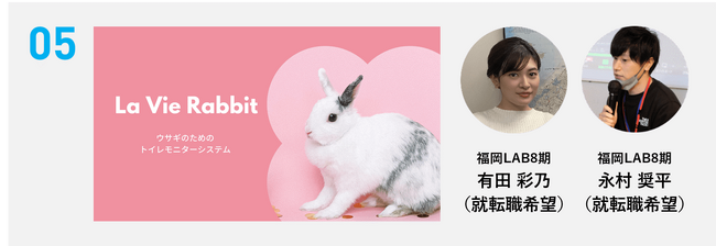 津田塾大学卒。メーカー、商社で事務職を経験後、ウサギ業界における問題解決に挑戦するためにG's ACADEMYに入学。自身もウサギ飼いであり、ウサギ愛好家たちへ豊かなペットライフを提供するサービスを開発することに情熱を注いでいる。