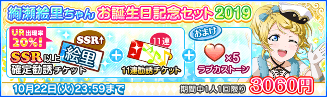 3日間限定で「絢瀬絵里ちゃんお誕生日記念セット2019」が登場!