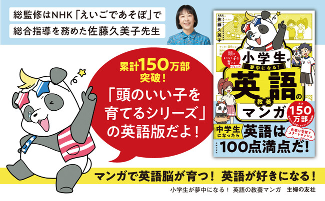 株式会社主婦の友社は、累計150万部を突破した「頭のいい子を育てる」シリーズから、2023年8月21日(月)に『小学生が夢中になる! 英語の教養マンガ』(https://www.amazon.co.jp/dp/4074552108/ )を発売いたしました。