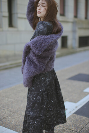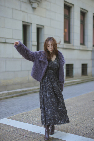 Jacket ¥31,900 / Dress ¥25,300 / Pierced earrings ¥ 8,250 / Shoes ¥24,200