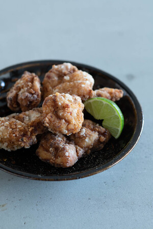 ポイントは、かたくり粉に水を加えて軽くもみ、ポロポロとさせたころもを作り、たっぷり鶏肉にまとわせてから揚げること。