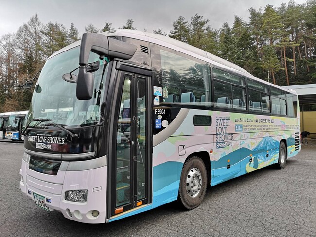 ラブシャスプリング開催を記念してラブシャスプリング仕様の富士急バス「ラブシャ号」が都内〜山中湖方面を運行中!