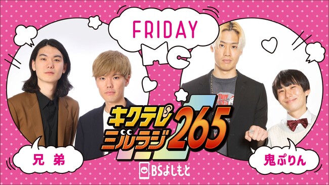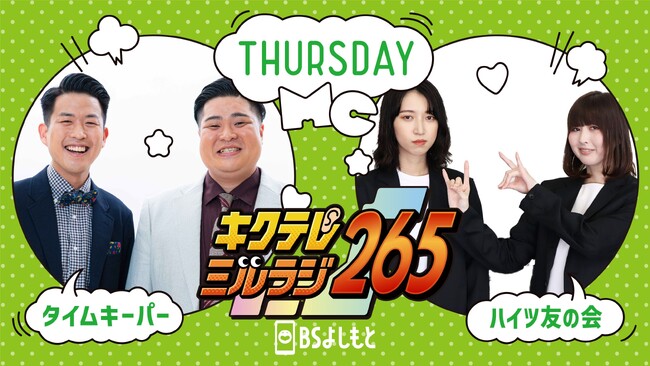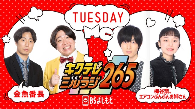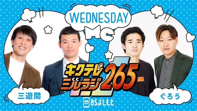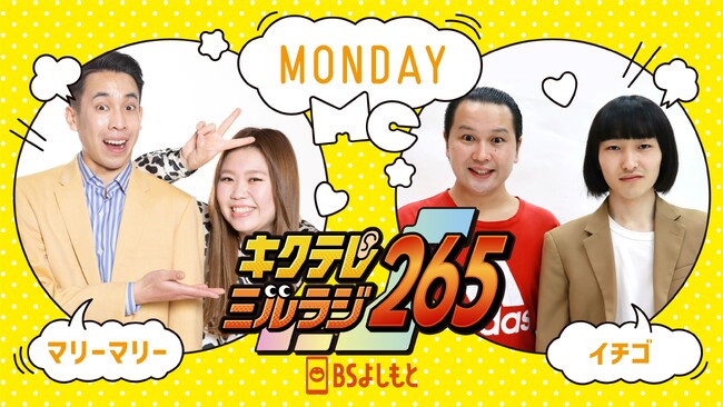 BSよしもとでは7月3日(月)より、毎週(月)〜(金)14:00〜18:00の4時間生放送番組『キクテレミルラジ265』を放送開始いたします。