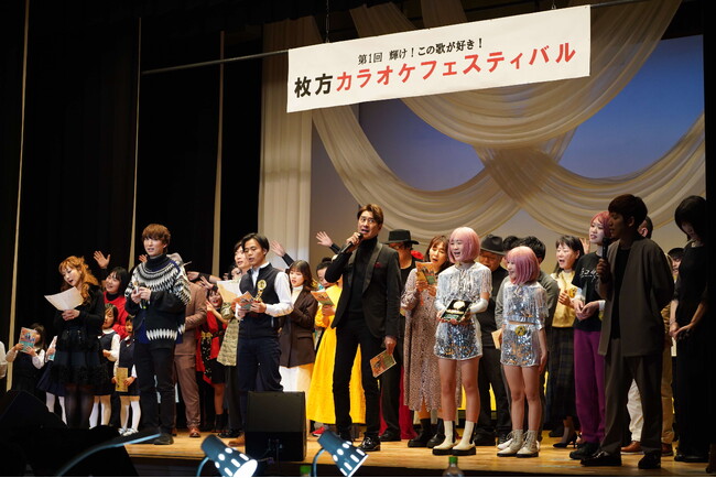 当社では、本コンテストへの出場を「終点」ではなく「起点」として、社歌を通じたコミュニケーションの輪がさらに大きく広がっていくことを願い、決勝進出企業の社歌をカラオケとして全国にお届けしてまいりました。1月27日(土)には、前回、地方自治体として初めて最優秀賞を受賞した枚方市が、「第一回この歌が好き 輝け!枚方カラオケフェスティバル!」を開催し、当社は機材提供やイベント運営のサポートを実施しました。出場、観覧希望者ともに定員数を大きく上回るほど注目を集め、当日は会場に集まった市民の皆さんが「この街が好き」を大合唱。歌を通じた絆の強さと、地元愛を感じさせる素晴らしいイベントとなりました。