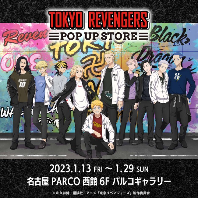 名古屋PARCO(愛知県名古屋市中区)では、TVアニメ「東京リベンジャーズ」のPOP UP STOREを、東京・原宿会場(東京都渋谷区)に続き、2023年1月13日(金)より、西館7F・PARCO GALLERYにて開催いたします。