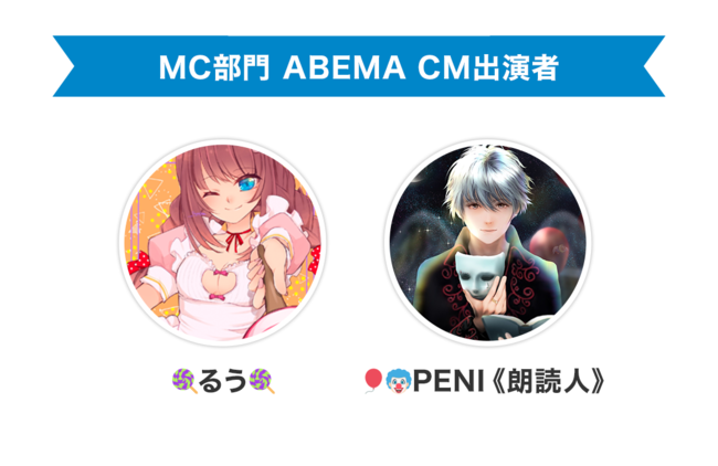 惜しくもMCの権利は逃したものの、次点で新しい未来のテレビ「ABEMA」で放送されるAWA CMへのナレ―ション出演できる権利を手に入れたのは、?るう?さん、??????《朗読人》さん。おめでとうございます!