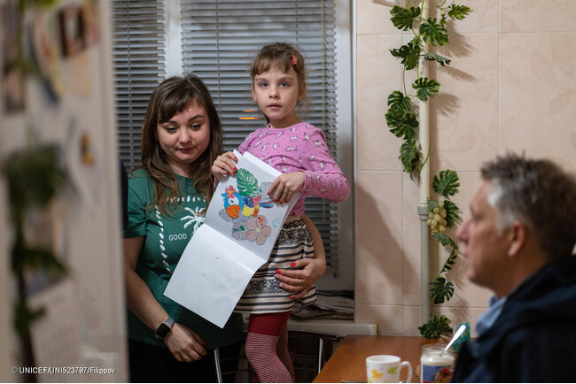 ユニセフの推計によると、ウクライナの最前線地域に住む子どもたちは、戦争が続くこの2年間に、3,000時間から5,000時間、つまり4カ月から7カ月に相当する時間を避難のため地下で過ごすことを余儀なくされています。