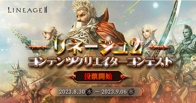 PC向けオンラインゲーム『リネージュ2』をサービス、運営しているエヌ・シー・ジャパン株式会社(東京都港区、代表取締役:金 澤憲(キム テクホン))は、2023年8月30日(水)に「コンテンツクリエイターコンテスト」の投票の開始、クラシックサービス/アデンサービスで各種イベントの開催をお知らせします。