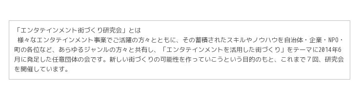 「第8回 エンタテインメント街づくり研究会」イベント概要