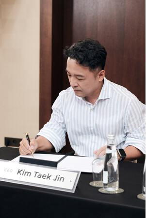 NCSOFT President 兼 CEOの Taekjin Kim(金 沢辰)と SIE社長 兼 CEOの Jim Ryan(ジム・ライアン)が会談し、共同でパートナーシップに署名しました。