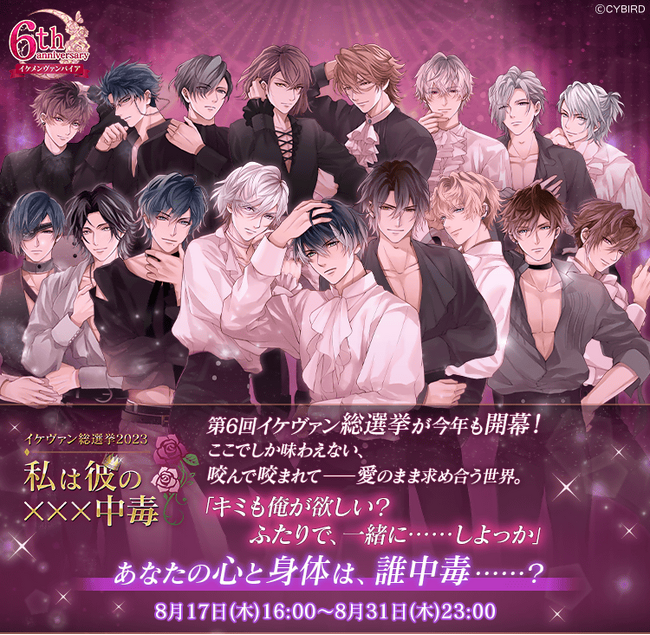 株式会社サイバード(本社:東京都渋谷区、代表取締役社長 兼 CEO 本島 匡)の、全世界でのシリーズ累計会員数4,000万人を誇る女性向け恋愛ゲーム「イケメンシリーズ」の人気タイトル『イケメンヴァンパイア◆偉人たちと恋の誘惑』は、2023年7月31日(月)でサービス開始より6周年を迎えました。