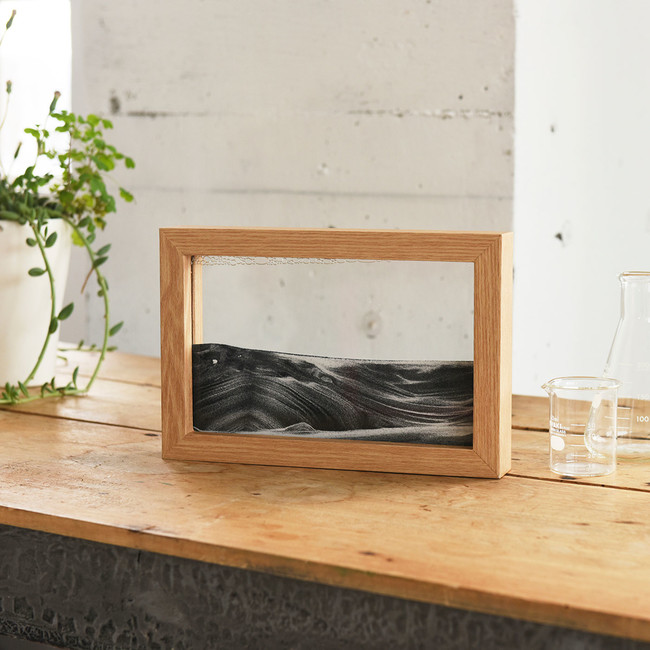 ウッディなフレームとモノトーンの砂がモダンな印象のアートフレーム。上下逆さに置くと、神秘的な砂のアートショーを楽しめるサンドピクチャーです。ゆっくりと降り積もる地層のような風景は一期一会で、お部屋のインテリアとしても楽しめます。
