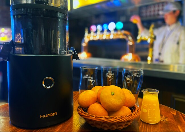 愛媛県・増田農園から直送される旬の和柑橘を使用して、スロージューサーで生搾りした果汁と生ビールをブレンドしたビヤカクテルを作ることができます。