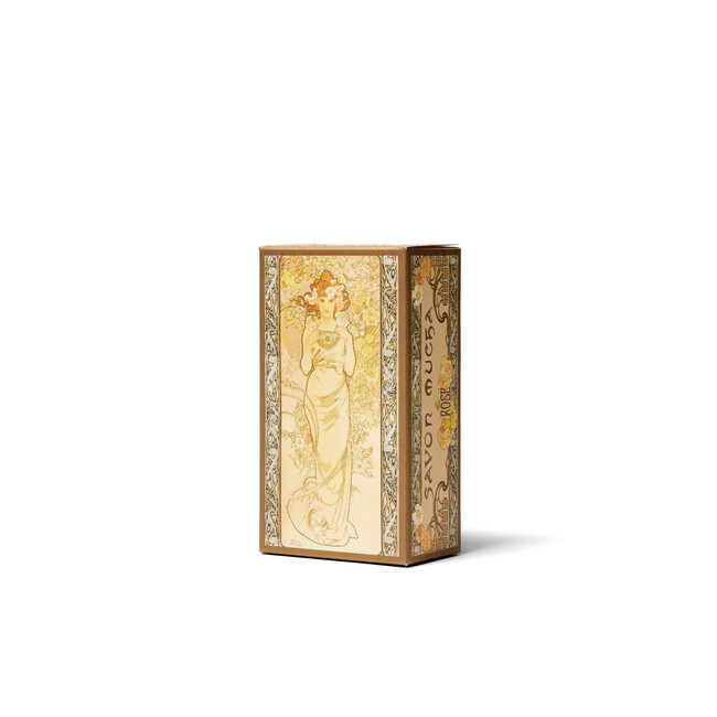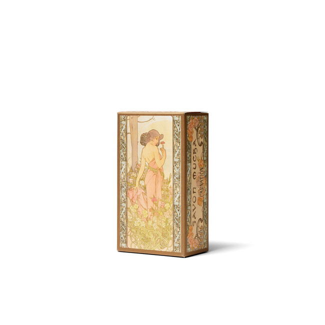 ミュシャの四連作“The Flowers [四つの花]”から生まれた4種の香りによるフレグランスソープ。植物性石けん素材から作られており、泡立ちがよく不要なものをしっかり落としながらも、洗い上がりはしっとり手肌を包み込みます。香りのもととなったミュシャのアートやアールヌーヴォーのモチーフをデザインした華やかなパッケージはギフトにもおすすめです。