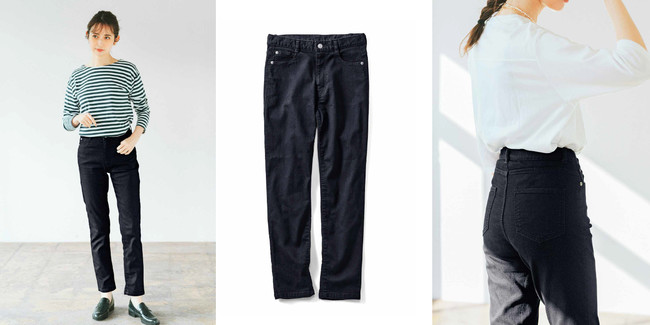 【NEW】IEDIT+[イディットプラス] 大人をきれいに見せる 国産ストレッチテーパードデニム〈ジェットブラック〉