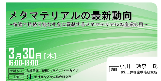 「メタマテリアルの最新動向」と題して、三井物産戦略研究所 小川 玲奈氏によるセミナーを2023年3月30日(木)に開催!!