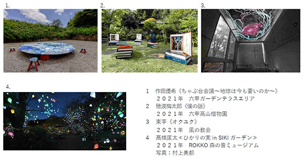 六甲山のエリア特性をじっくりと読み込み、自然や景観、歴史を取り入れた作品を各会場に展示します。