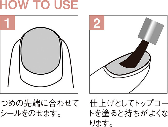 つめの先に合わせてシールをのせて貼るだけで、簡単におうちでサロン級のネイルを楽しめます。