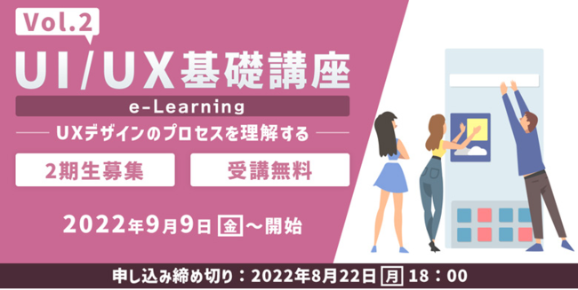 近年、Web業界では、職種やポジションを問わず、UI/UXを理解していることが求められるようになりました。そこで今回、「UI/UX基礎講座 Vol.1」でUI/UXの基礎知識を習得された方を対象に、UXデザインについてより具体的に理解を深めていただくことを目的とした続編の講座を開講することとなりました。